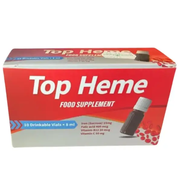 Top Heme Drinkable Ampules 10 Pieces هو مكمل غذائي مبتكر مصمم لدعم صحة الدم وعلاج نقص الحديد. يتميز هذا المنتج بتركيبته السائلة، مما يساعد على تعزيز الامتصاص وتحسين مستويات الهيموغلوبين في الجسم. بالإضافة إلى ذلك، يعتبر خياراً مثالياً للبالغين، الأطفال، والنساء الحوامل.