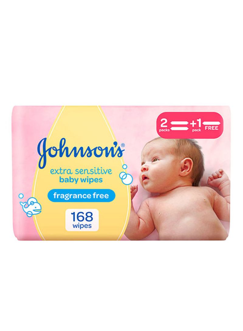 المناديل المبللة Offer Pack 2+1, Johnsons Extra Sensitive Baby Wipes, 168 Pcs, Yellow