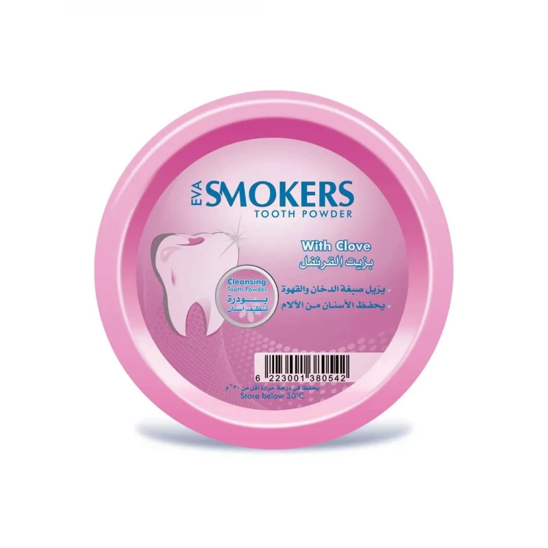يُعد EVA Smokers Tooth Powder خيارًا مثاليًا للمساعدة في إزالة التصبغات الناتجة عن التدخين والمشروبات التي تترك بقعًا على الأسنان، مثل الشاي والقهوة. بالإضافة إلى ذلك، تعمل البودرة على تنظيف الأسنان بعمق، مما يحافظ على بياضها الطبيعي. علاوة على ذلك، فإنه يحتوي على مكونات فعّالة تمنع تراكم البلاك، مما يحسن من صحة الفم واللثة. بالتالي، فإن الاستخدام المنتظم لهذا المسحوق يعزز الثقة بابتسامتك ويحافظ على انتعاش الفم لفترة طويلة.