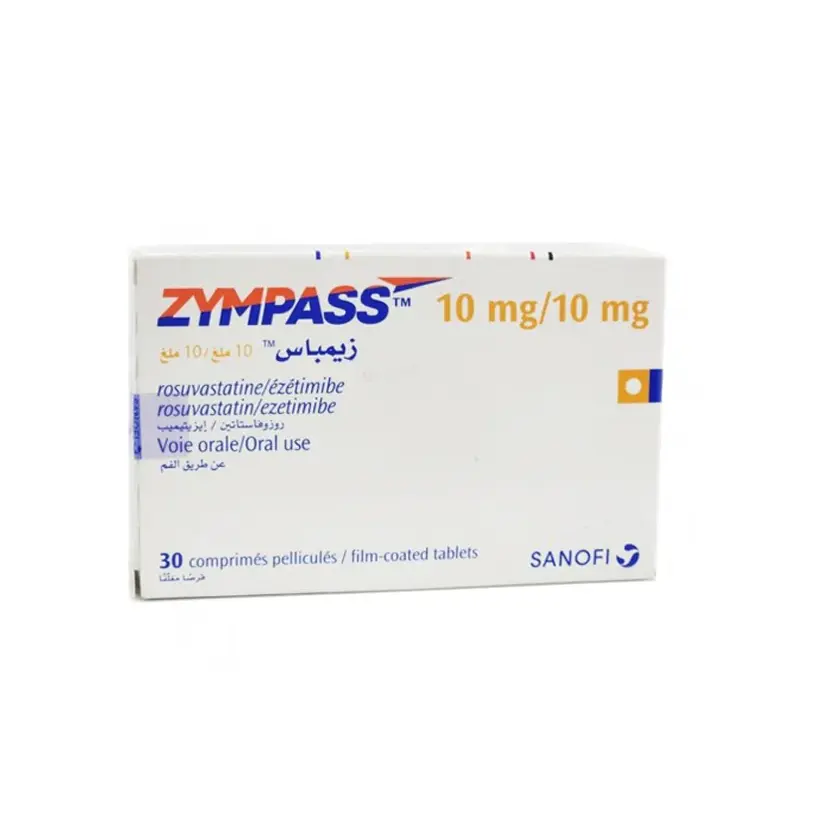 Zympass 10/10mg 30 Tablets هو دواء مركب يُستخدم لعلاج ارتفاع الكوليسترول في الدم، حيث يحتوي على مزيج من مادتي Rosuvastatin وEzetimibe، اللتين تعملان معًا لتقليل مستويات الكوليسترول الضار (LDL) والدهون الثلاثية في الدم. يساعد هذا الدواء في تحسين مستويات الكوليسترول الجيد (HDL)، مما يقلل من خطر الإصابة بأمراض القلب والشرايين. يؤخذ بعد وصفة طبية فقط.