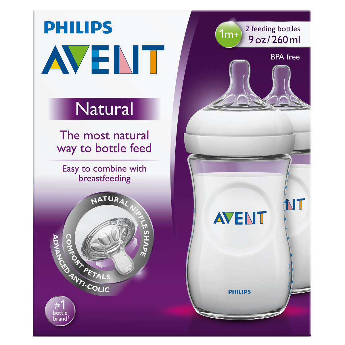 رضاعة الاطفال Avent Natural Bottle 260ml (Twin Pack) 1m+