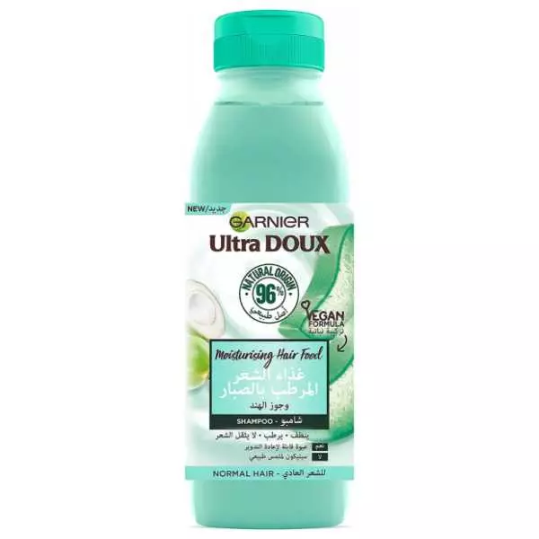 يعد Garnier Ultra Doux Aloe Shampoo 350ml شامبو لطيفًا ومناسبًا للشعر العادي لأنه يجمع بين الألوفيرا وجوز الهند بتركيبة طبيعية بنسبة 96% تساعد على ترطيب الشعر ومنحه مظهرًا صحيًا ولامعًا. كما يعمل هذا الشامبو على تنظيف الشعر بلطف لأنه يزيل الشوائب دون أن يسبب جفافًا، مما يجعله مناسبًا للاستخدام اليومي. بالإضافة إلى ذلك، يمنح Garnier Ultra Doux Aloe Shampoo 350ml ترطيبًا متوازناً بفضل الألوفيرا التي تعيد النعومة للشعر، بينما يساهم جوز الهند في إضافة لمعان واضح دون إثقال الخصلات.