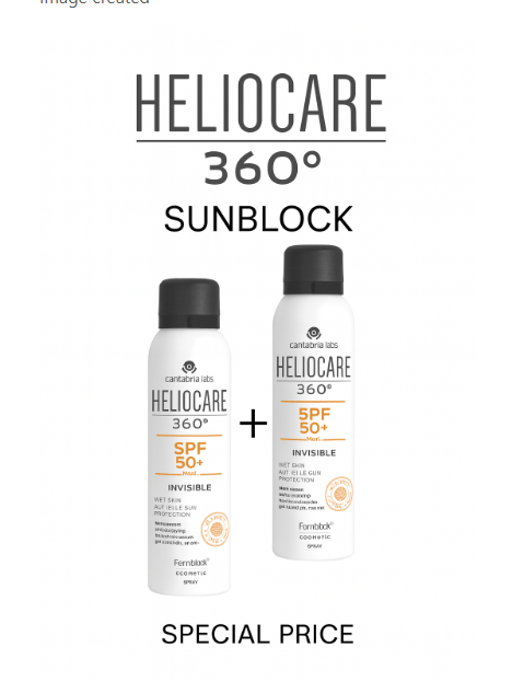 Heliocare 360 Sunblock SPF 50+ Invisible Spray 200ml – 2 Pcs Special Price هو عرض مزدوج يوفر حماية شاملة للبشرة من أشعة الشمس الضارة مع بخاخ شفاف سهل الاستخدام. يتميز بتركيبة متطورة تعتمد على تقنية Fernblock® التي تمنح وقاية فعّالة من أشعة UVA وUVB والأشعة تحت الحمراء والضوء المرئي. بالإضافة إلى ذلك، يحتوي على مضادات أكسدة قوية تقلل من تأثير الجذور الحرة وتحافظ على شباب البشرة. بفضل البخاخ الشفاف، يوزع بسهولة دون ترك أي أثر دهني أو أبيض على الجلد، مما يجعله خيارًا عمليًا ومثاليًا للاستخدام اليومي.