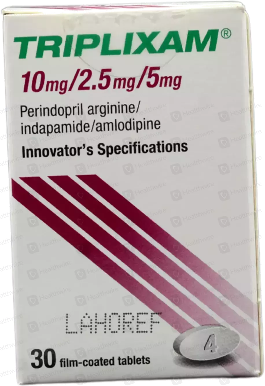 Triplixam 10/2.5/5 mg 30 Tablets هو دواء مركب يحتوي على ثلاث مواد فعالة: Perindopril، Indapamide، وAmlodipine. يستخدم لعلاج ارتفاع ضغط الدم والتحكم في ضغط الدم لدى المرضى الذين يحتاجون إلى علاج مشترك. يساعد الدواء في تقليل خطر الإصابة بمشاكل القلب والأوعية الدموية مثل النوبات القلبية والسكتات الدماغية.