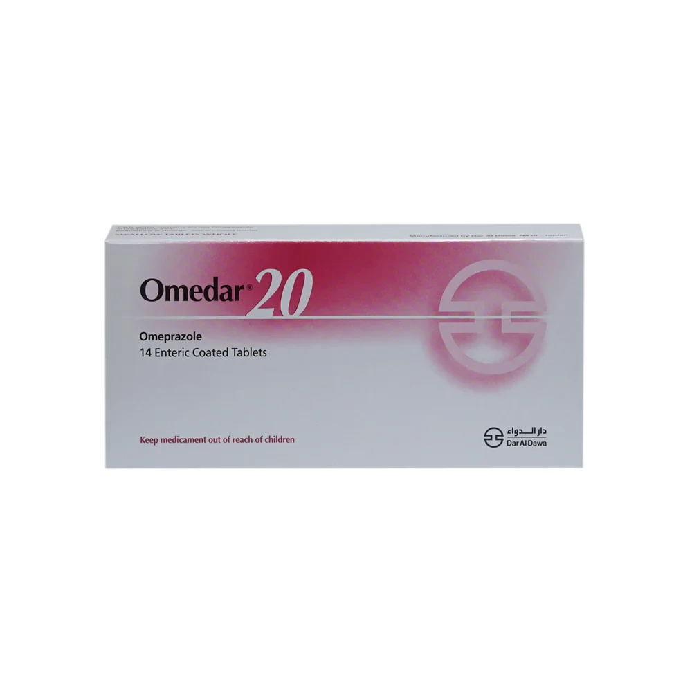 يعد Omedar 20mg من الأدوية الفعالة لعلاج حموضة المعدة وقرحة المعدة والارتجاع المريئي، حيث يحتوي على Omeprazole 20mg، وهو أحد مثبطات مضخة البروتون (PPI) التي تعمل على تقليل إفراز حمض المعدة، مما يساعد في التخفيف من الحموضة وحماية بطانة المعدة والمريء من التهيج والتقرحات.
