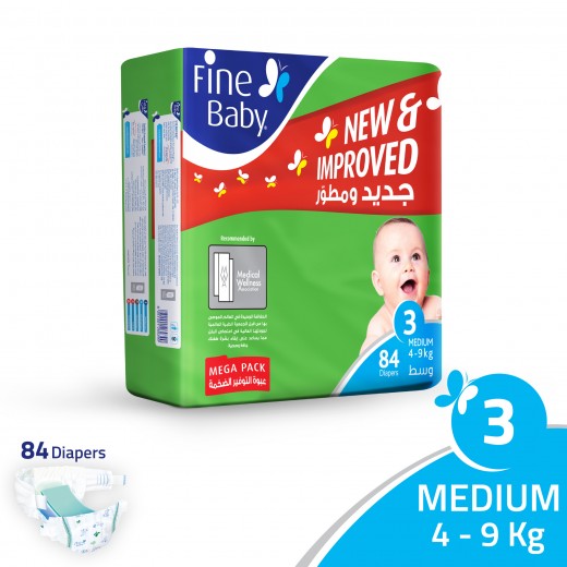 فوط الأطفال Fine Baby Diapers, Size 3, 4-9 Kg, Mega Pack, 84 Count