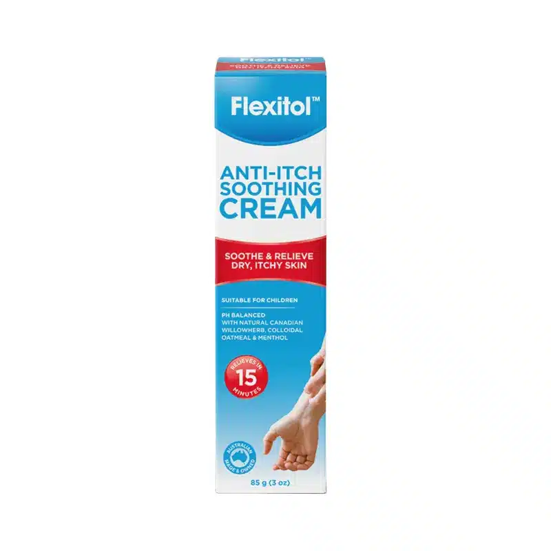 يعالج Flexitol Anti-Itch Cream الحكة المصاحبة للأكزيما ولدغات الحشرات وجفاف الجلد، كما يقلل الالتهاب والاحمرار. يساهم عشب الصفصاف في تخفيف الالتهابات بفضل خصائصه المهدئة، بينما يرطب الشوفان البشرة بعمق ويكوّن حاجزًا واقيًا يقلل فقدان الرطوبة، ويمنح المنثول إحساسًا باردًا يخفف الحكة فورًا.