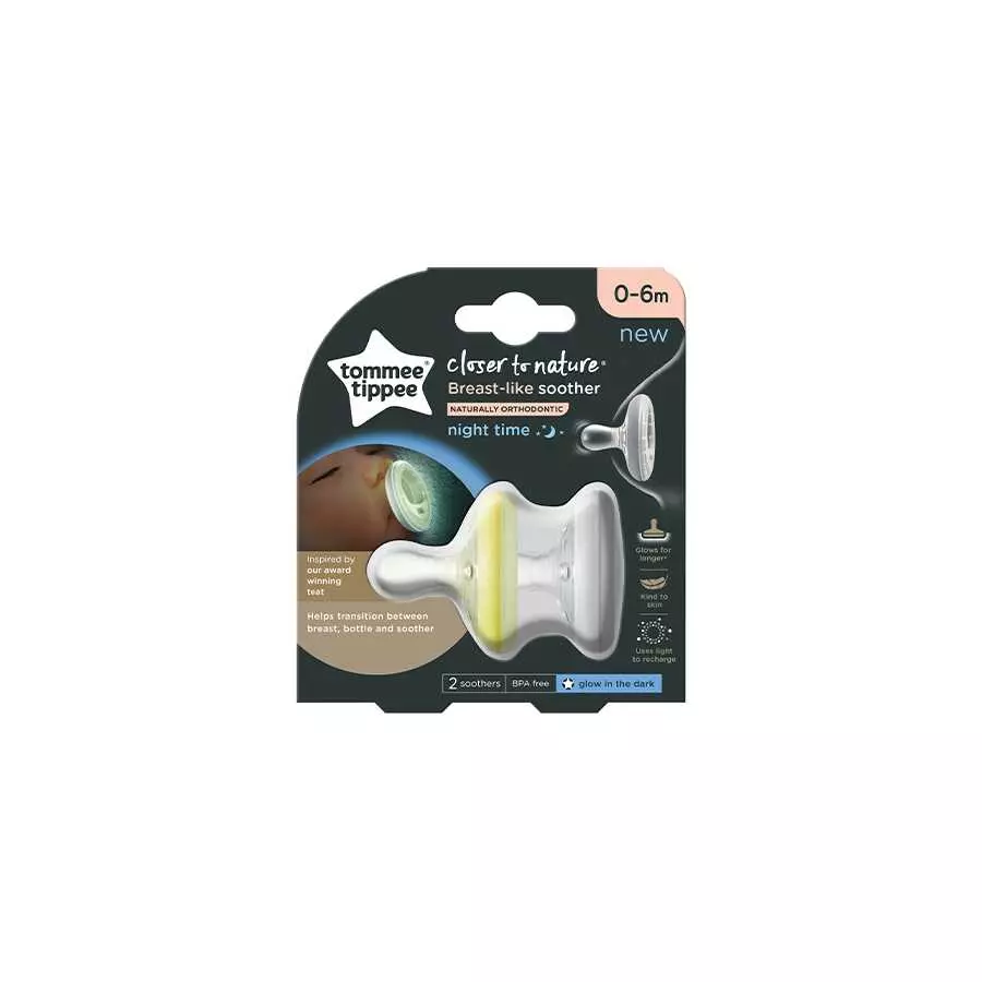 Tommee Tippee Breast Like Night Soother هي لهاية ليلية مصممة للأطفال من عمر 0 إلى 6 أشهر، تم تطويرها خصيصًا لتسهيل الانتقال الطبيعي بين الرضاعة الطبيعية والرضاعة بالزجاجة واللهاية. بالإضافة إلى ذلك، تتميز بتصميم يحاكي شكل الثدي، مما يمنح الطفل إحساسًا مألوفًا ومريحًا يساعد على التهدئة والقبول السريع، خاصة أثناء الليل.