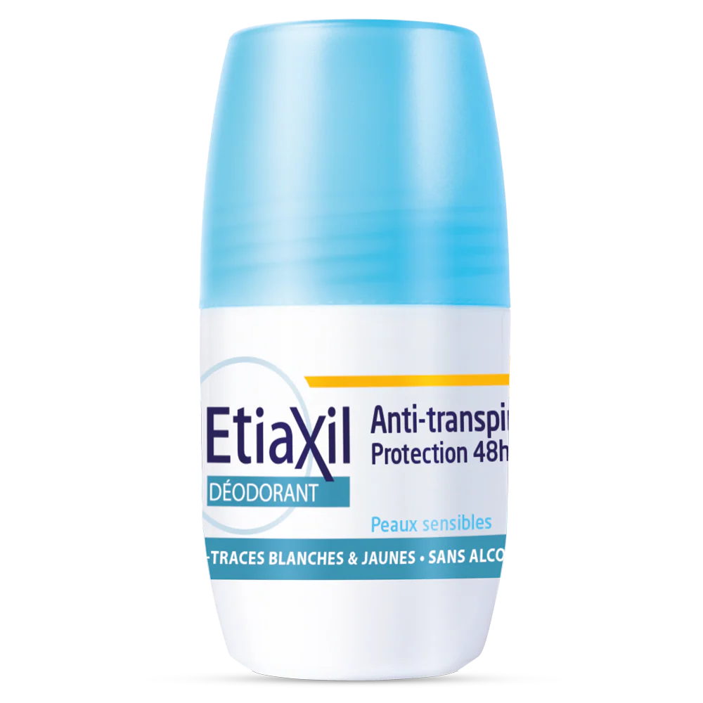 Etiaxil Anti Perspirant Deodorant Roll On Sensitive (Blue) 48H 50ml رول أون مزيل عرق مضاد للتعرق مخصص للبشرة الحساسة. يوفر حماية فعالة تدوم حتى 48 ساعة ضد التعرق المفرط والروائح الكريهة، بتركيبة خالية من الكحول والعطور. يأتي بحجم 50 مل بتصميم أزرق هادئ مثالي للاستخدام اليومي.