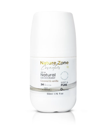 يتميز Nature Zone Deodorant Coconut and Vanilla 50ml بتركيبته الطبيعية الفريدة التي تجمع بين فعالية الحماية العطرية ورعاية البشرة الحساسة تحت الإبط. إذ يقدم هذا مزيل العرق الطبيعي رول أون حماية تدوم 24 ساعة بفضل مكوناته العشبية الخالية من الكحول والألمنيوم والبارابين، مما يجعله آمنًا ولطيفًا حتى بعد الليزر أو الحلاقة. يحتوي على زيت الميرمية، زبدة الشيا، الشب الطبيعي، النشا، وفيتامين E التي تعمل معًا لتنظيم التعرق، ترطيب البشرة، وتفتيح لونها بشكل طبيعي مع الحفاظ على رائحة منعشة من جوز الهند والفانيلا.