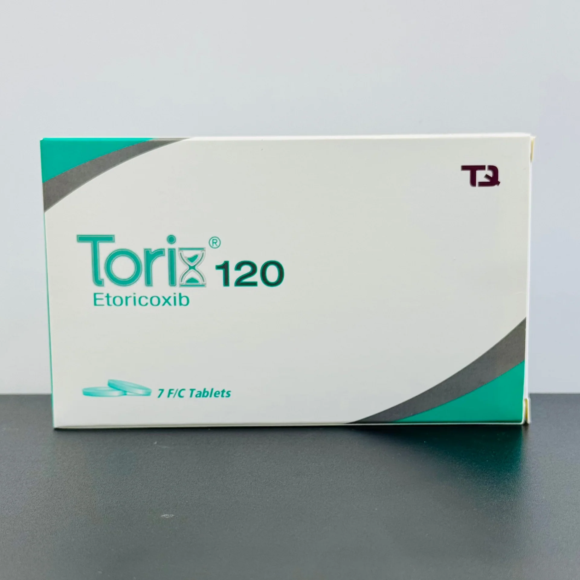 Torix 120mg 7 Tablets هو دواء يحتوي على المادة الفعالة Etoricoxib، وهو من مثبطات إنزيم COX-2 الانتقائية. يُستخدم لعلاج الألم والالتهابات في حالات مثل النقرس الحاد، التهاب المفاصل، وحالات الألم المزمنة أو الحادة.