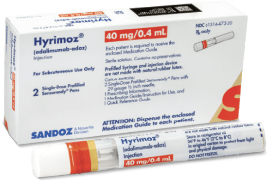 يقلل Hyrimoz من الاحمرار والقشور المصاحبة لمرض الصدفية، مما يحسن مظهر الجلد ويقلل من الحكة.