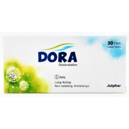Dora 5mg Tablets هو دواء يحتوي على المادة الفعالة Desloratadine، التي تنتمي إلى مضادات الهيستامين طويلة المفعول. يُستخدم لعلاج أعراض الحساسية المختلفة مثل سيلان الأنف، الحكة، والعيون الدامعة. كما يُساعد في تخفيف أعراض الشرى المزمن (الأرتكاريا)، مما يمنح راحة طويلة الأمد من الأعراض المزعجة. يتميز الدواء بفعاليته في تقليل الأعراض دون التسبب بالنعاس، مما يسمح باستخدامه خلال الأنشطة اليومية.