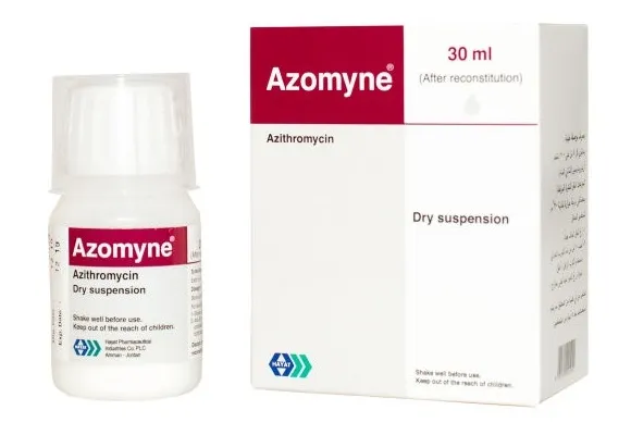 يعد Azomyne Suspension 30ml من المضادات الحيوية واسعة الطيف التي تستخدم لعلاج الالتهابات البكتيرية المختلفة، حيث يحتوي على Azithromycin، وهو مضاد حيوي من مجموعة الماكروليدات التي تعمل على إيقاف نمو البكتيريا المسببة للعدوى.
