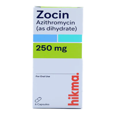 يعالج Zocin 250mg Capsules الالتهابات البكتيرية المتنوعة عند البالغين والمراهقين. يحتوي على Azithromycin، وهو مضاد حيوي واسع الطيف من فئة الماكروليد. يوقف Azithromycin نمو البكتيريا من خلال تثبيط تصنيع البروتين داخل الخلايا البكتيرية، مما يجعله فعالًا في علاج التهابات الجهاز التنفسي، الجلد، والأعضاء التناسلية.