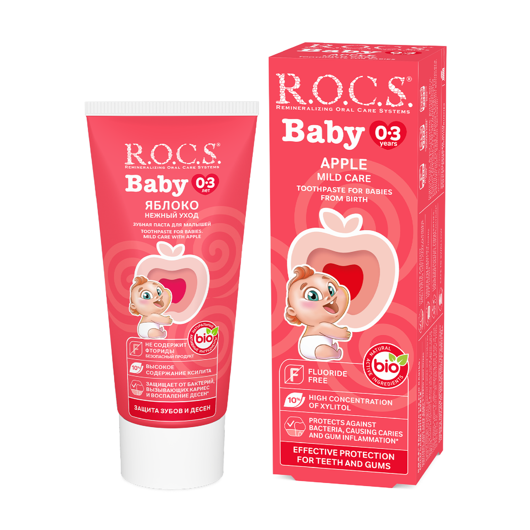 يعد ROCS Baby Mild Care Toothpaste 45g معجون أسنان طبيعي ولطيف صُمم خصيصًا لحماية أسنان ولثة الأطفال منذ الأيام الأولى. تركيبته الفريدة تحتوي على Xylitol بنسبة 10% الذي يساعد على الوقاية من التسوس واستعادة توازن البكتيريا المفيدة في الفم. بالإضافة إلى ذلك، يحتوي على مستخلص فاكهة السفرجل الذي يهدئ اللثة خلال فترة التسنين ويقلل من الالتهاب، مما يمنح الطفل راحة وابتسامة صحية كل يوم. ومن ناحية أخرى، يتميز هذا المعجون بنكهة التفاح المحببة للأطفال، كما أن تركيبته الخالية من الفلورايد والبارابين وSLS تجعله آمنًا تمامًا للاستخدام اليومي دون أي قلق من البلع.