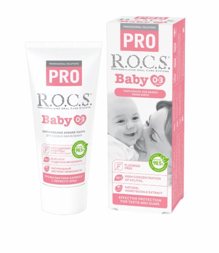 يناسب ROCS Pro Baby Toothpaste 45g الأطفال من عمر الولادة وحتى 3 سنوات، وهو آمن تمامًا للاستخدام اليومي تحت إشراف الأهل.
