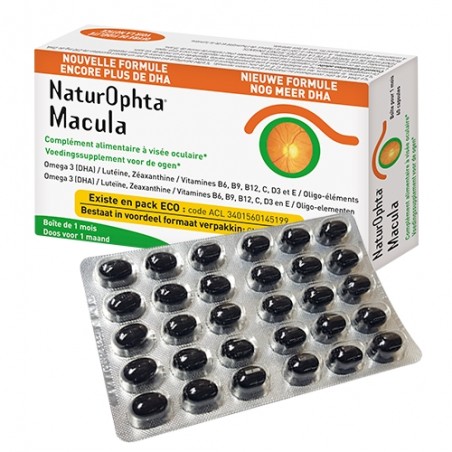 يساعد Naturophta Macula في تعزيز صحة العين بفضل اللوتين والزياكسانثين، مما يُساهم في حماية الشبكية وتحسين الرؤية. بالإضافة الى ذلك، يعمل المنتج على تقليل الإجهاد الناتج عن التعرض المستمر للشاشات.