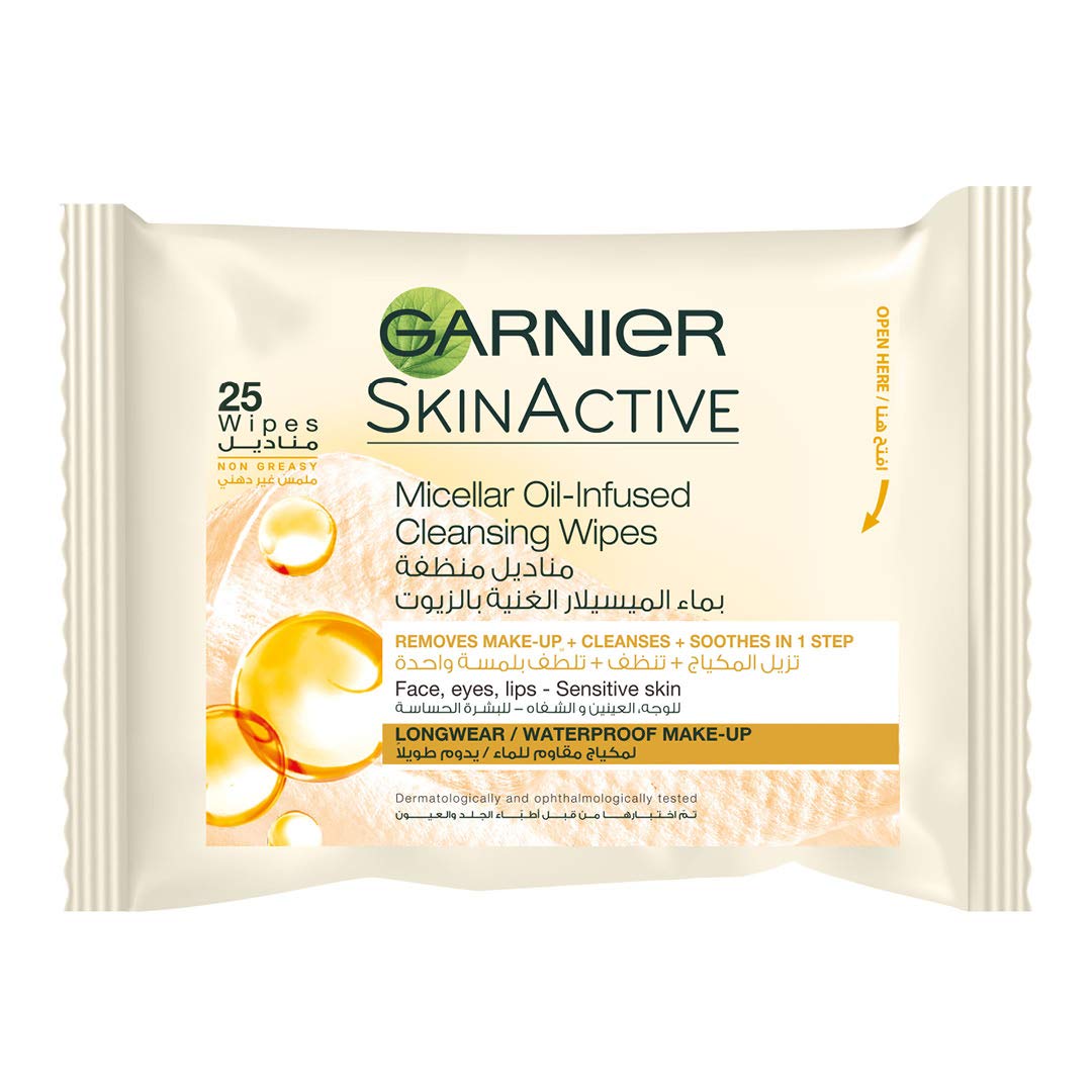 مناديل ازالة المكياج Garnier Micellar Oil Infused Cleansing Wipes 25 Pcs