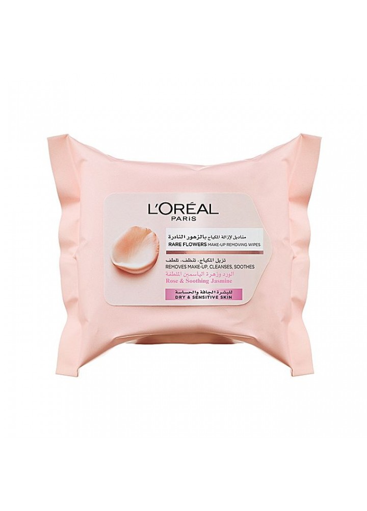 مناديل ازالة المكياج Loreal Rare Flowers Cleansing Wipes (Dry To Sensitive Skin) 25 Pcs