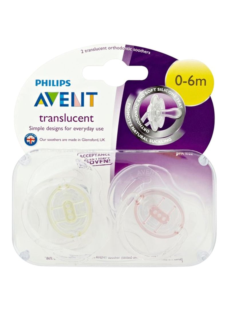 Avent Translucent Silicone Pacifier 0-6 month 2 Pcs