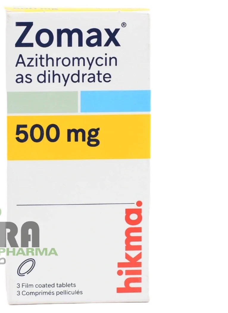 يستخدم Zomax 500mg لعلاج العديد من الالتهابات البكتيرية التي تصيب الجهاز التنفسي، الجلد، والأذن، ويحتوي على مادة Azithromycin التي تنتمي إلى مجموعة الماكروليد، والتي تعمل على وقف نمو البكتيريا. يُعد هذا الدواء فعالًا في القضاء على العدوى خلال فترة قصيرة.